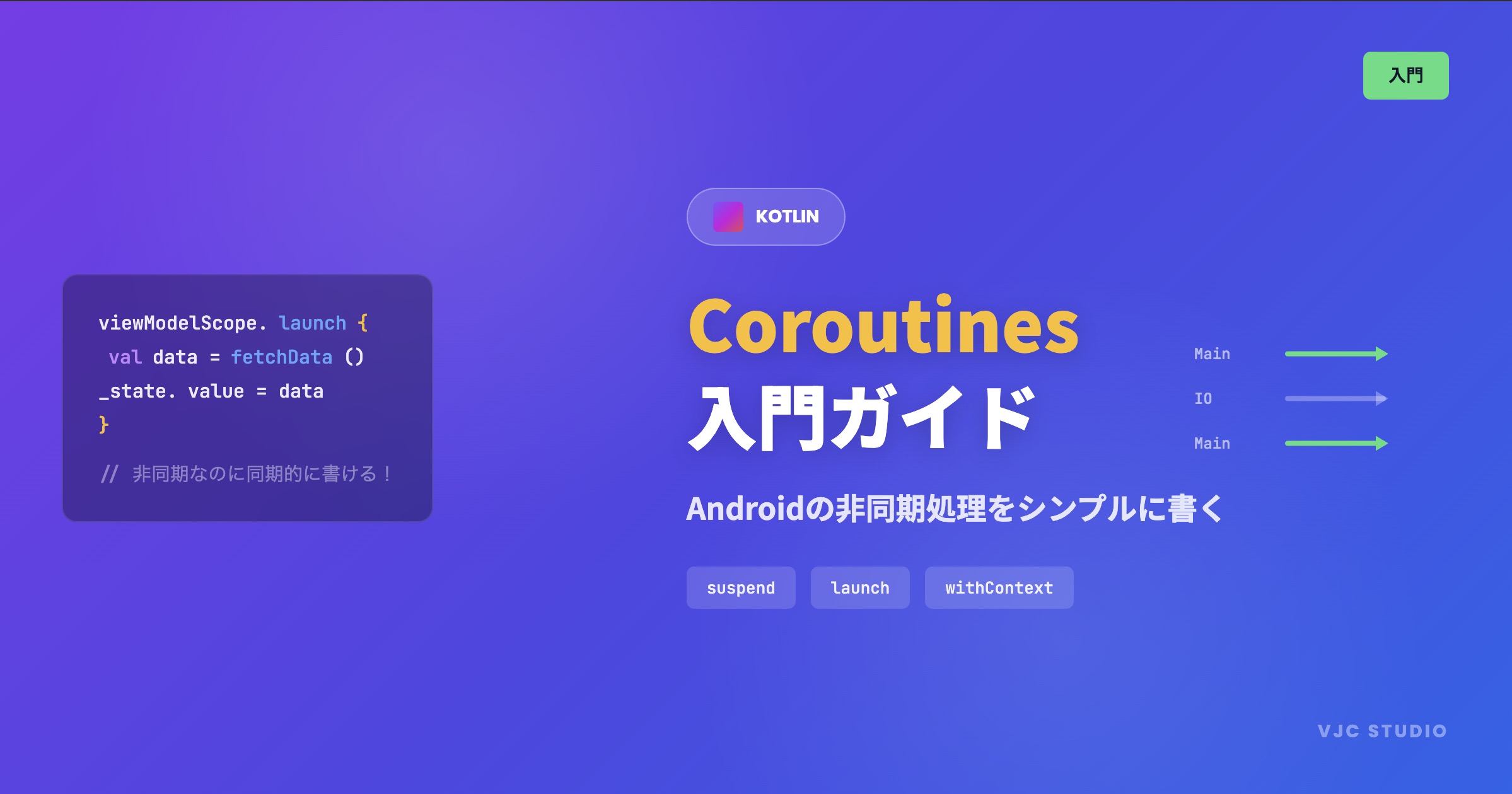 Kotlin Coroutinesを使えば、こうした非同期処理をシンプルかつ直感的に書けるようになります。